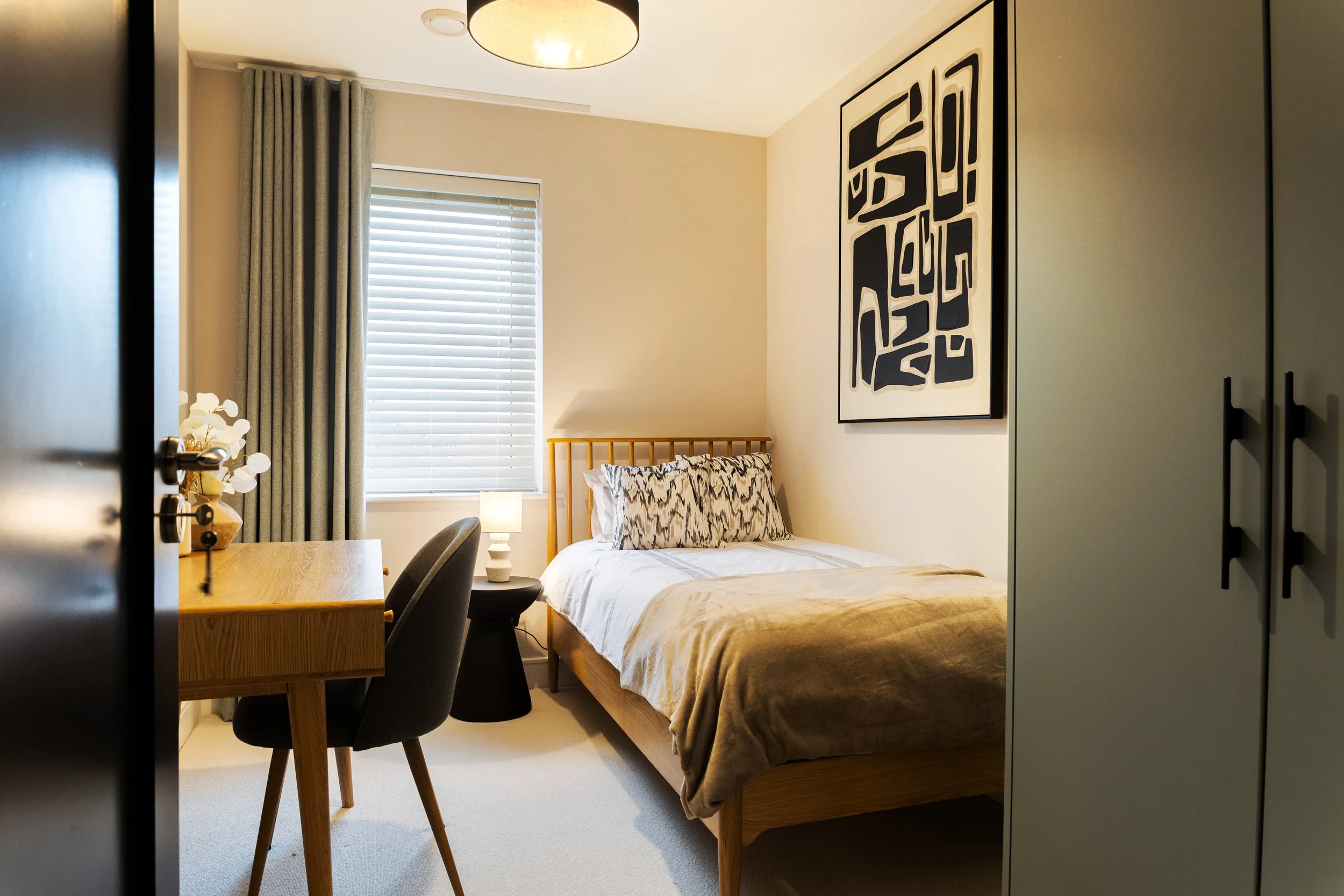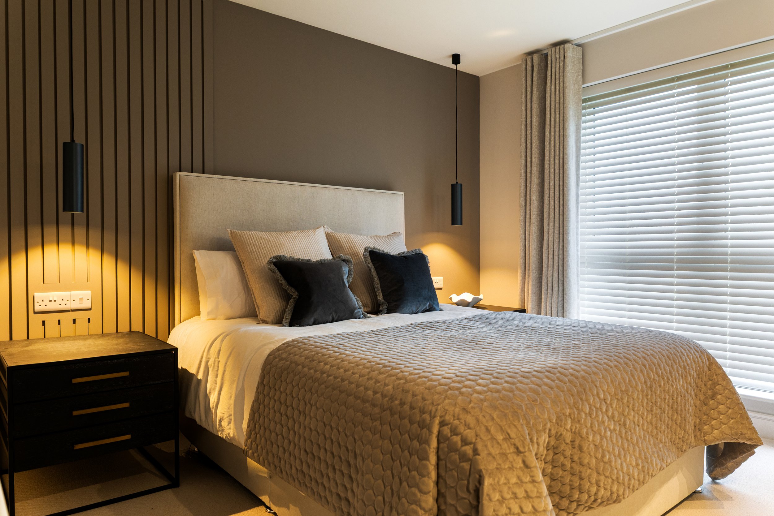 We managed and sourced all materials, finishes, furniture, fitted cabinetry, soft furnishings, art and accessories and homeware. Our full installation began once the client received the keys, taking the property from a dusty builders finish to a contemporary and stylish home.