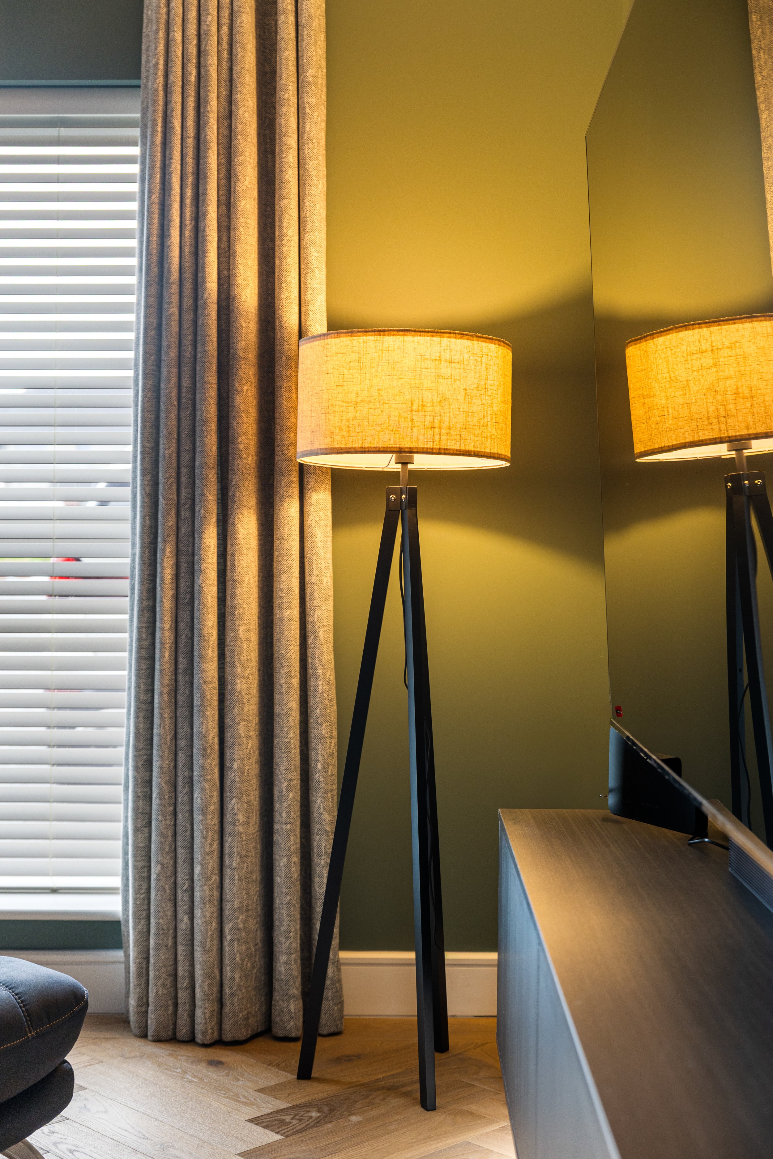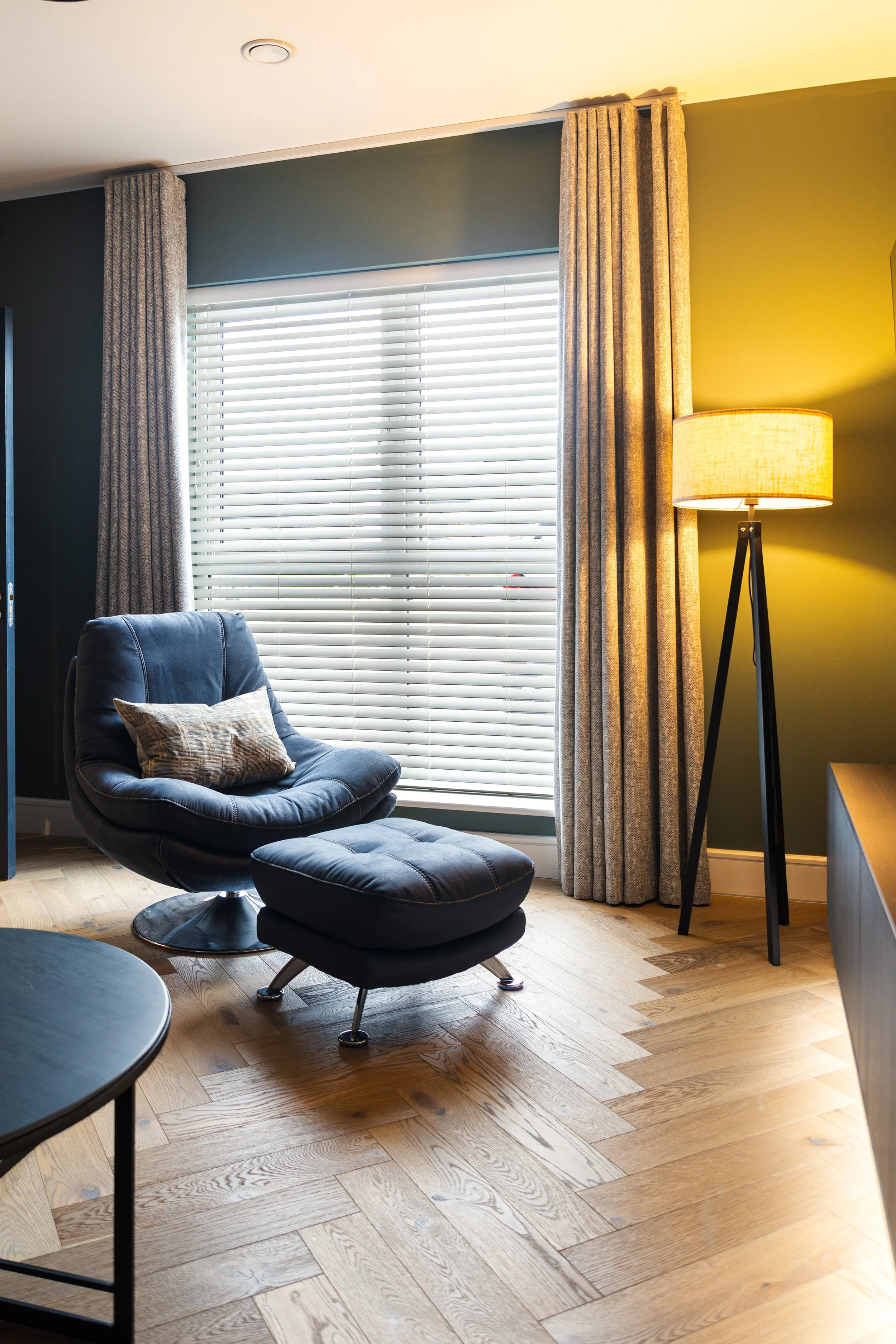 Herringbone Floor and Bespoke Curtains