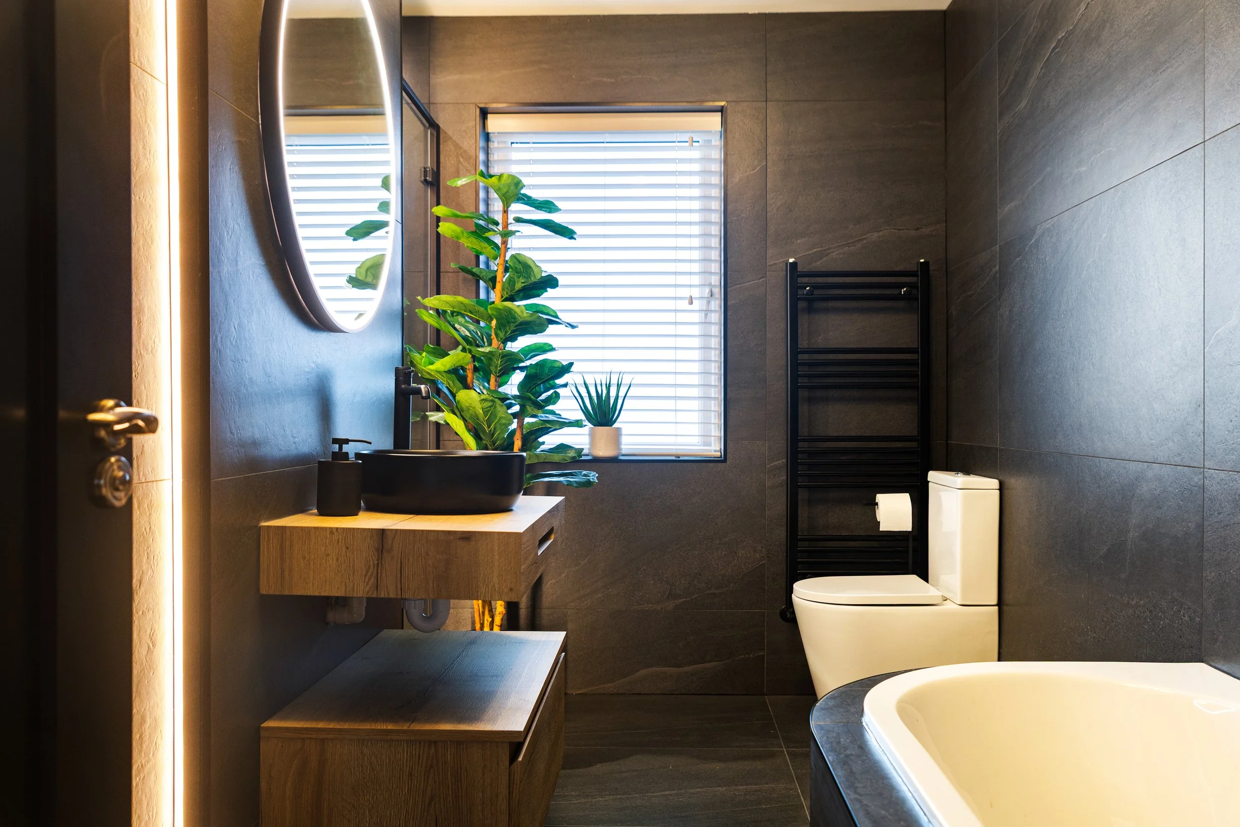 Main Bathroom with Black Concrete Tiles