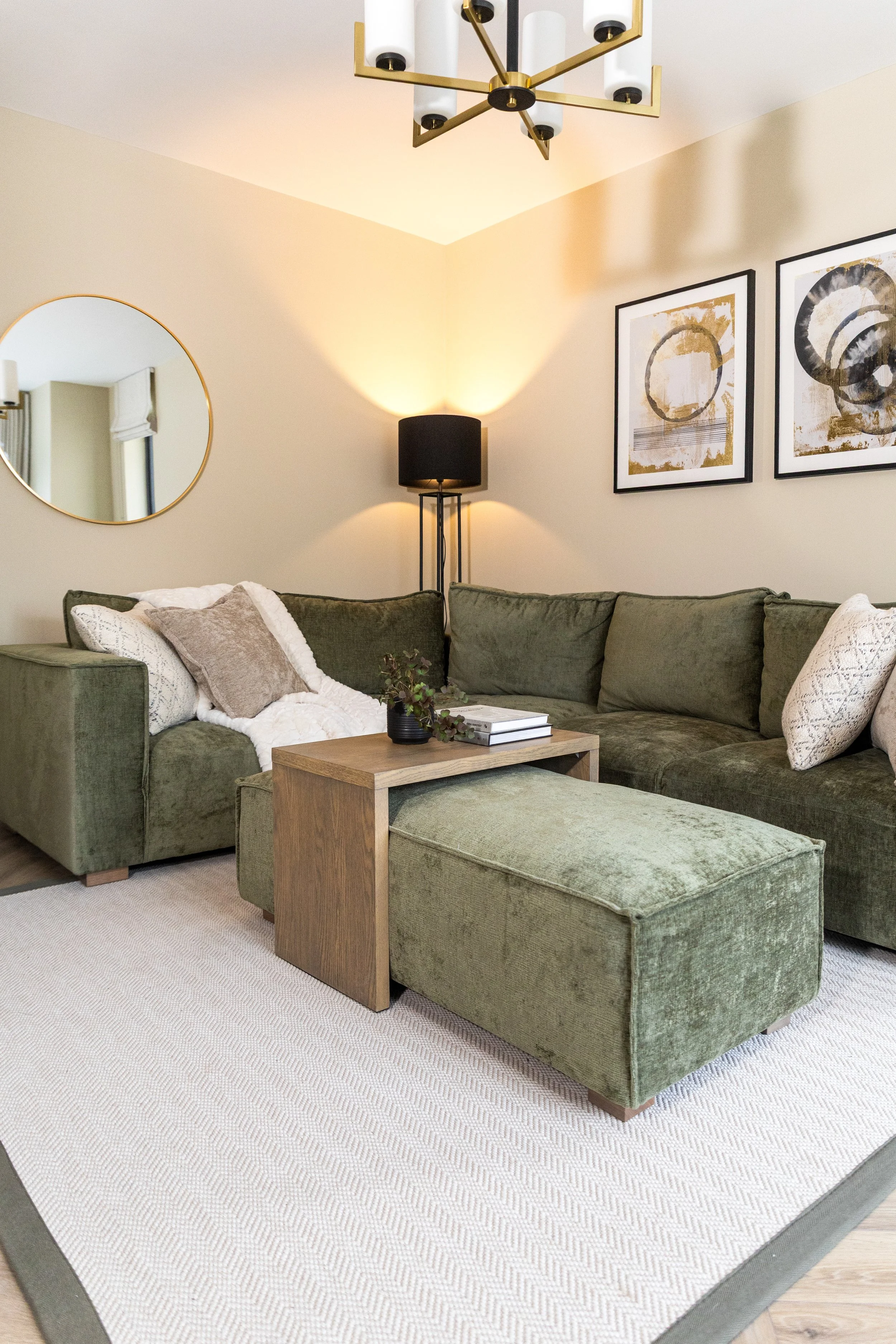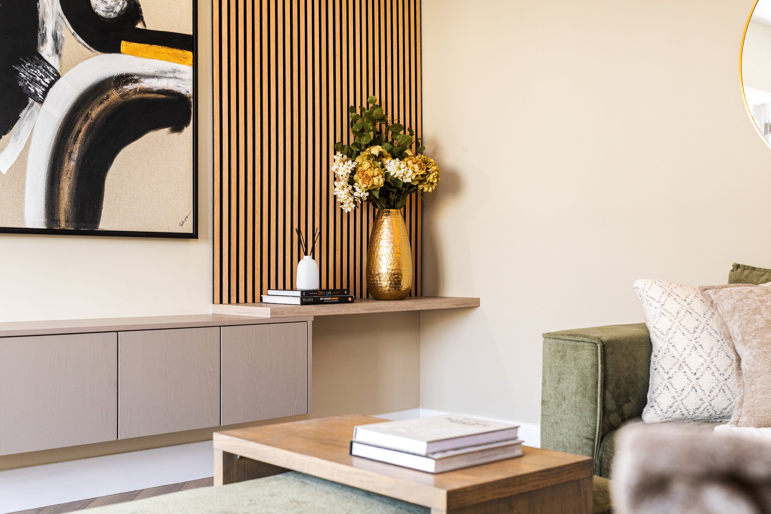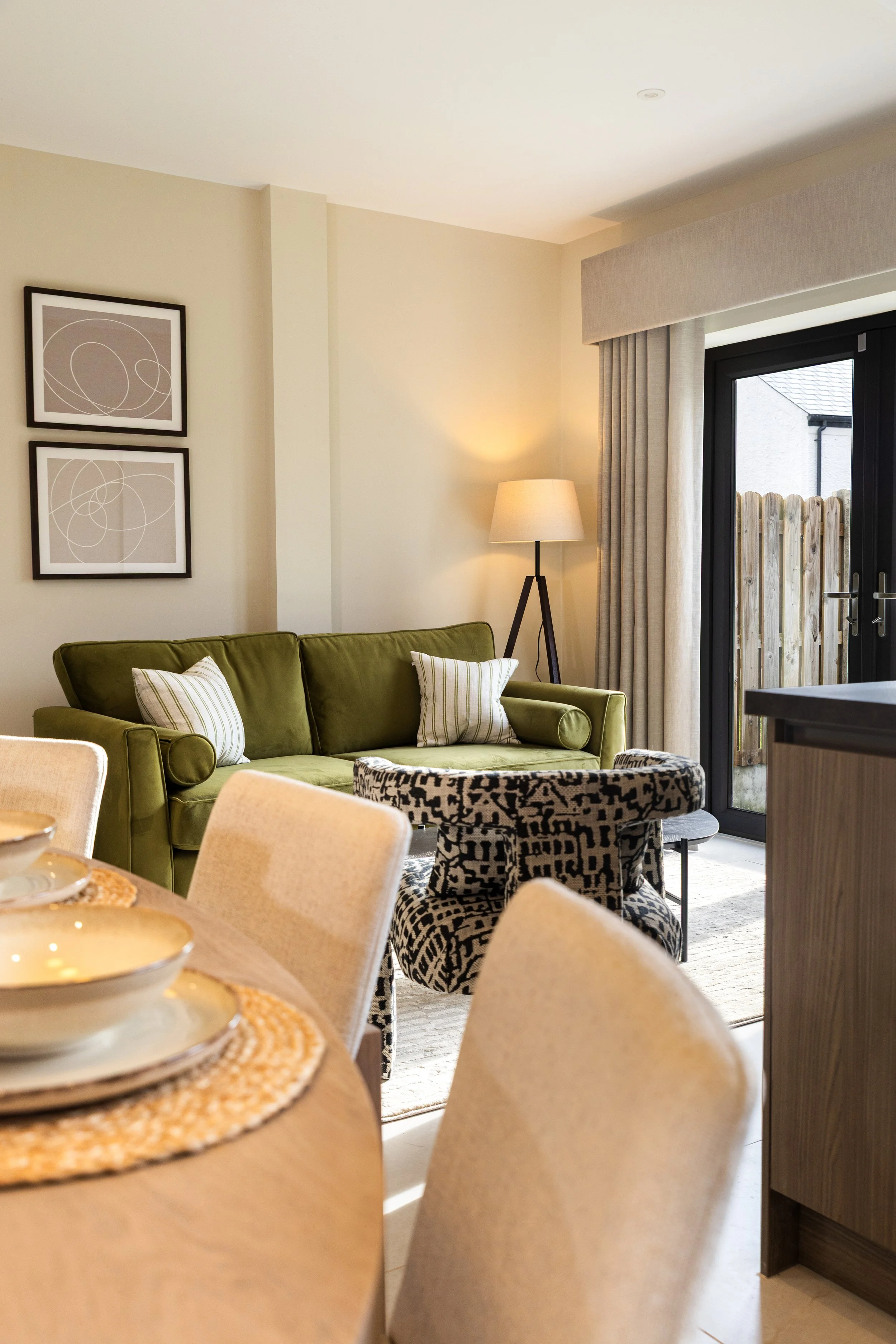 The brief was contemporary and timeless design that would appeal to homeowners of all ages and at all stages. Ensuring we used local suppliers we sourced furniture, soft furnishings, lighting, art and accessories.