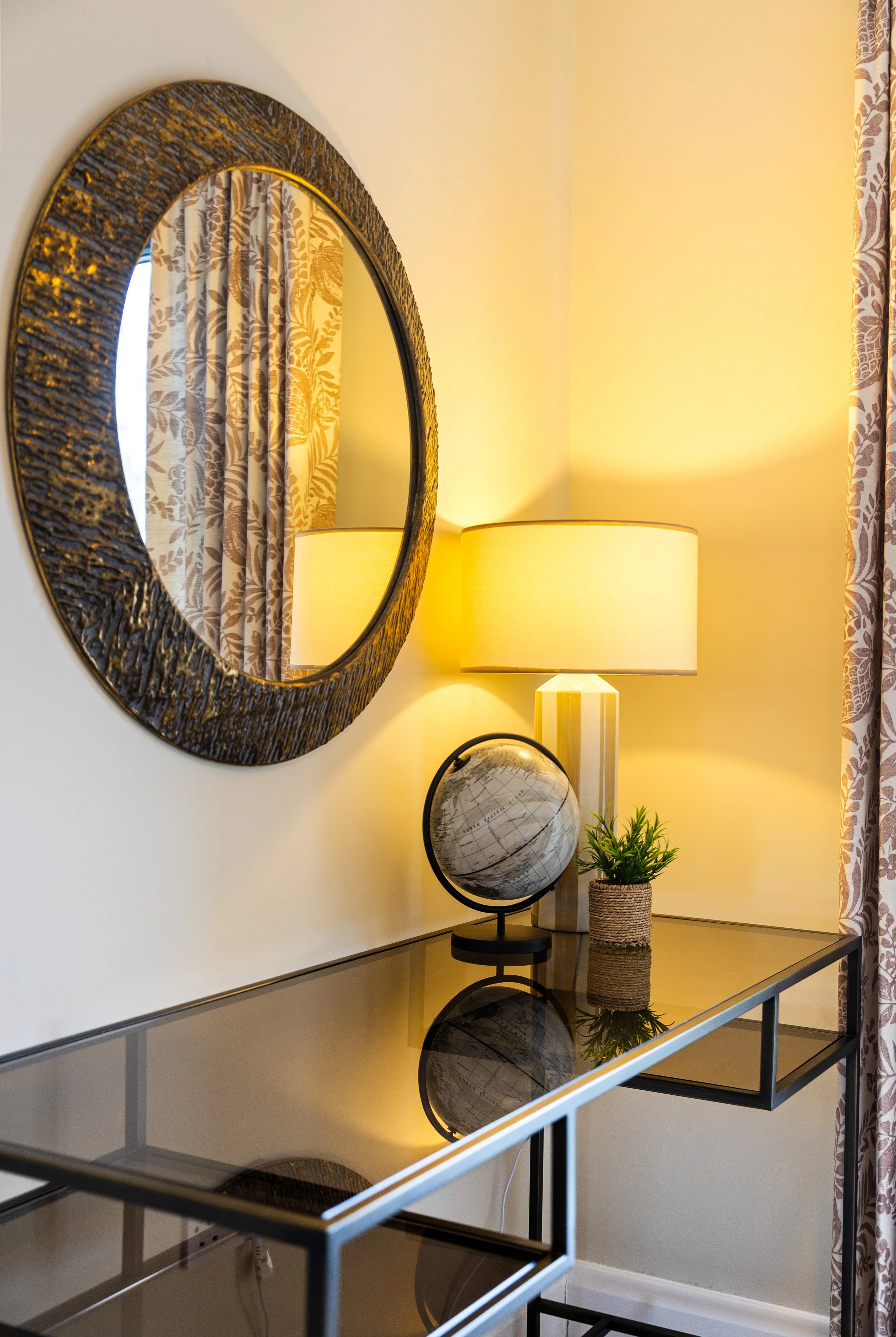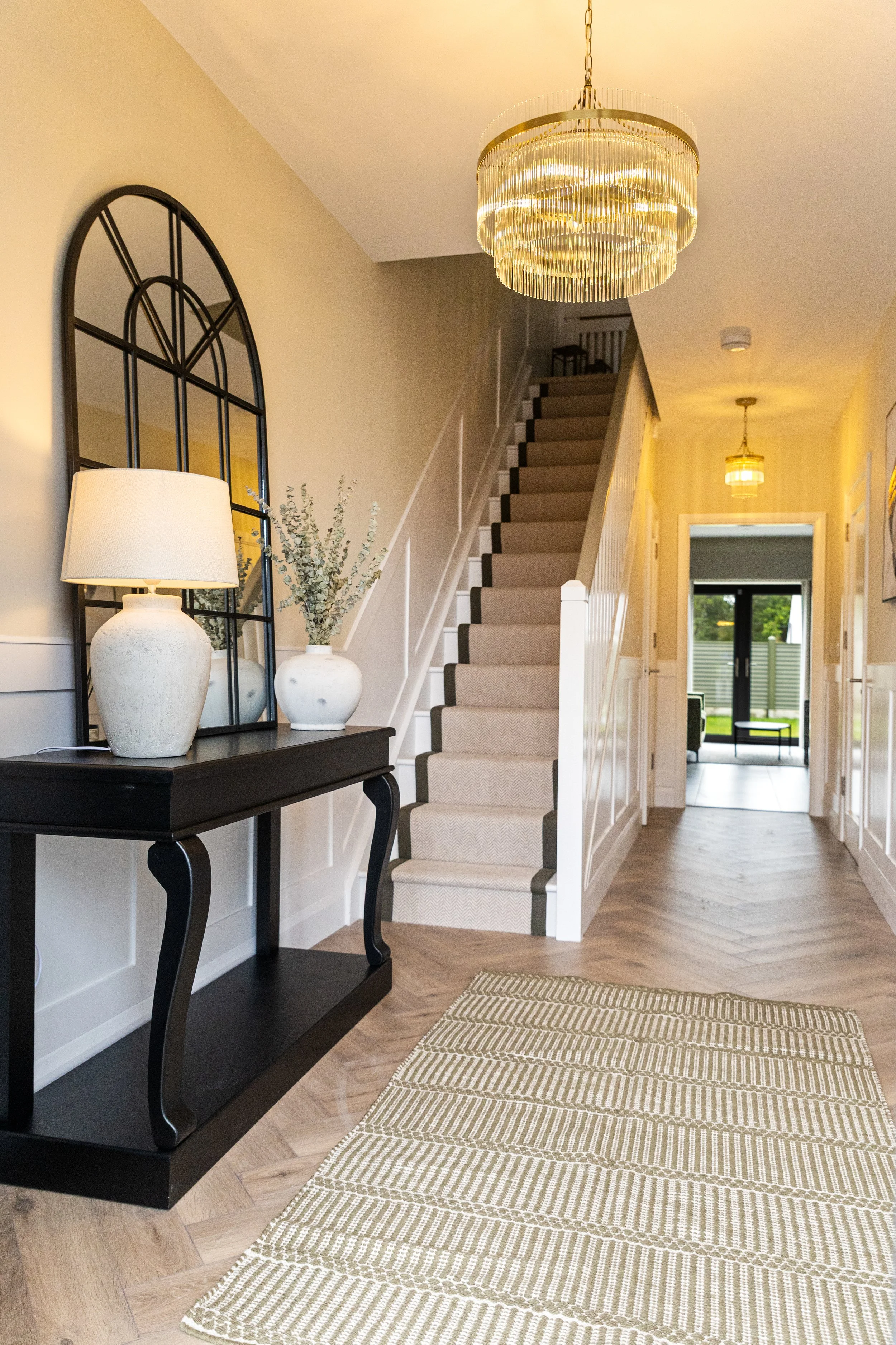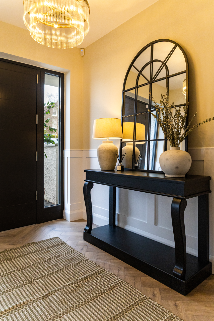 Hallway Design with Console Table and Arched Mirror