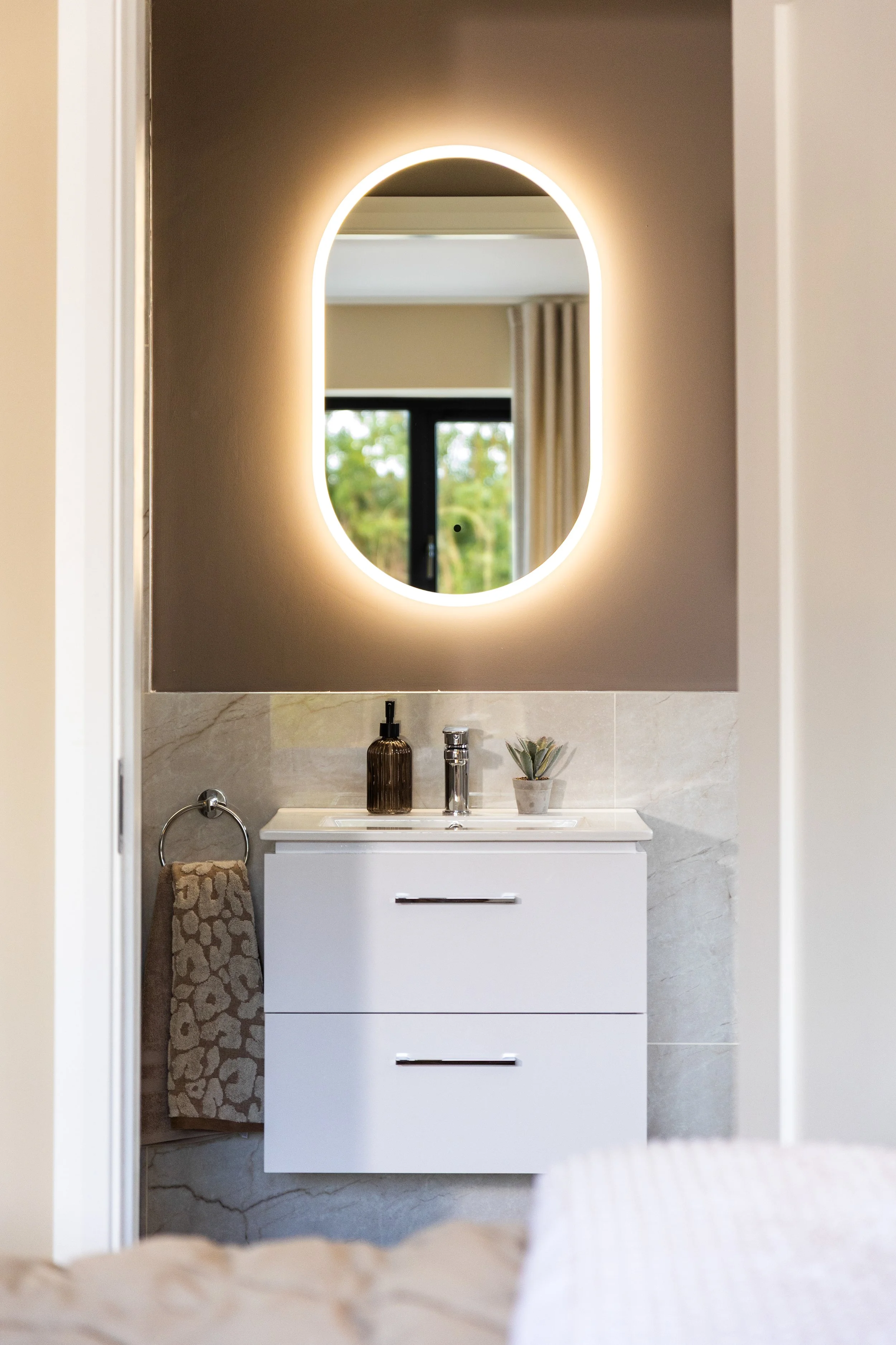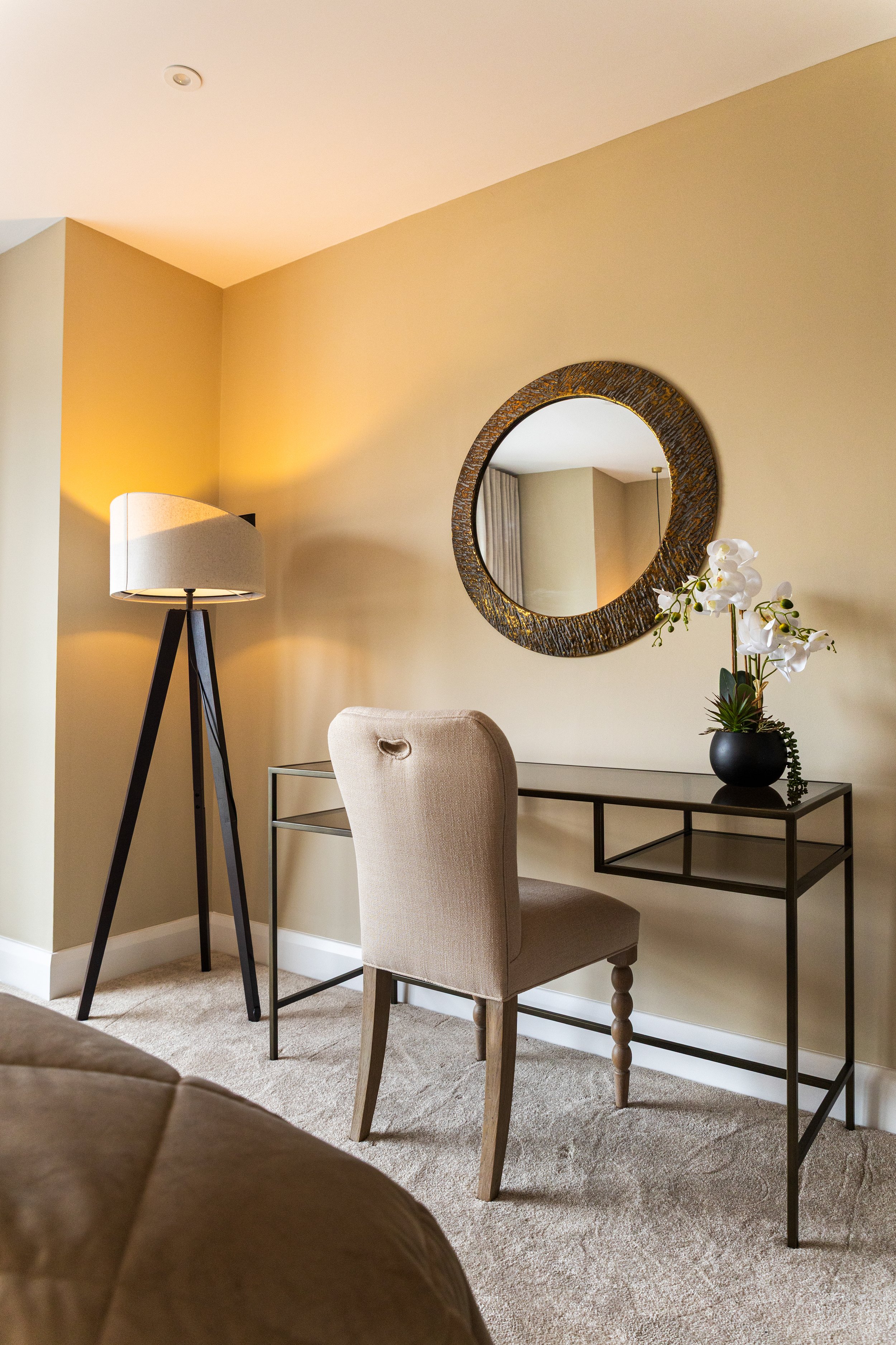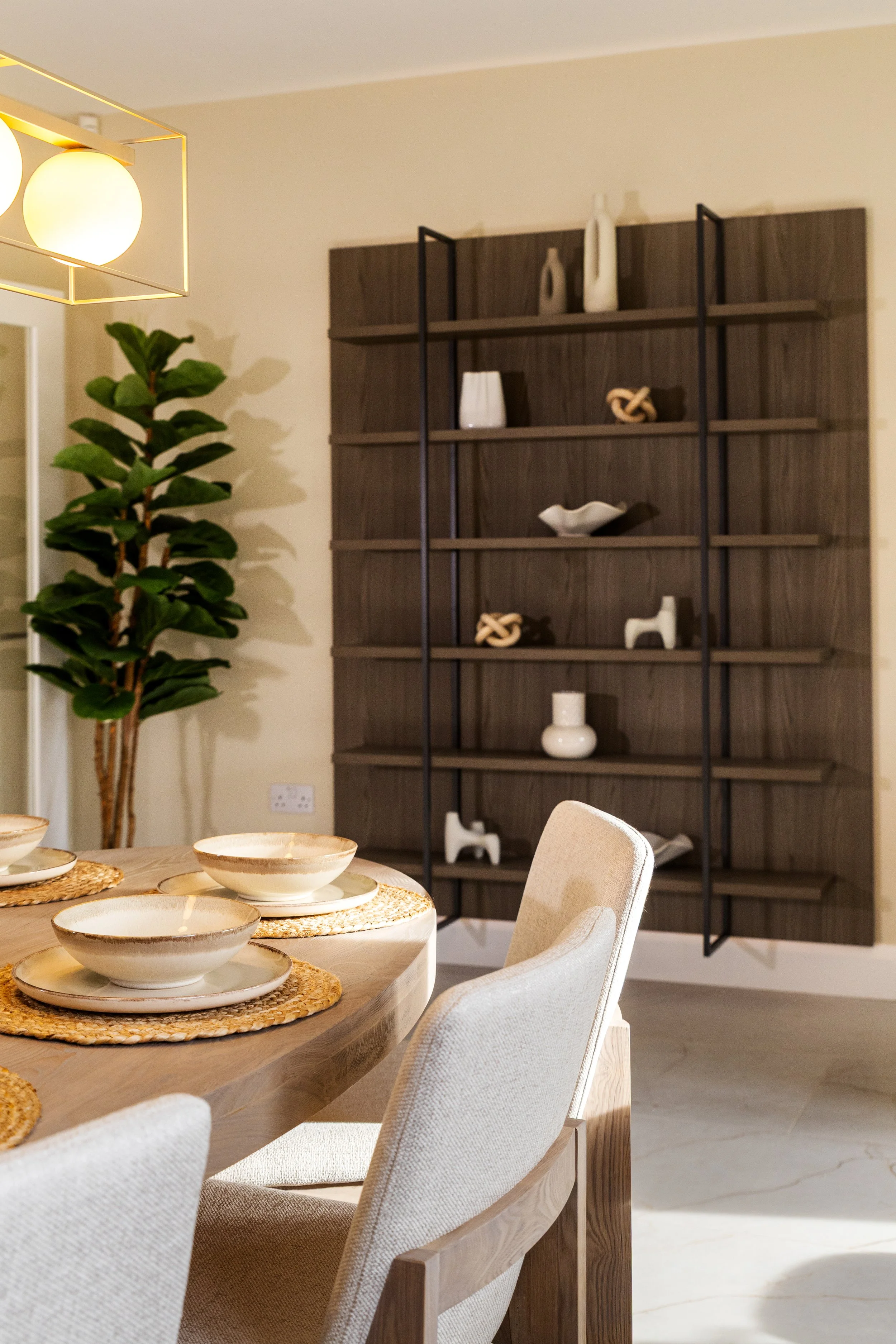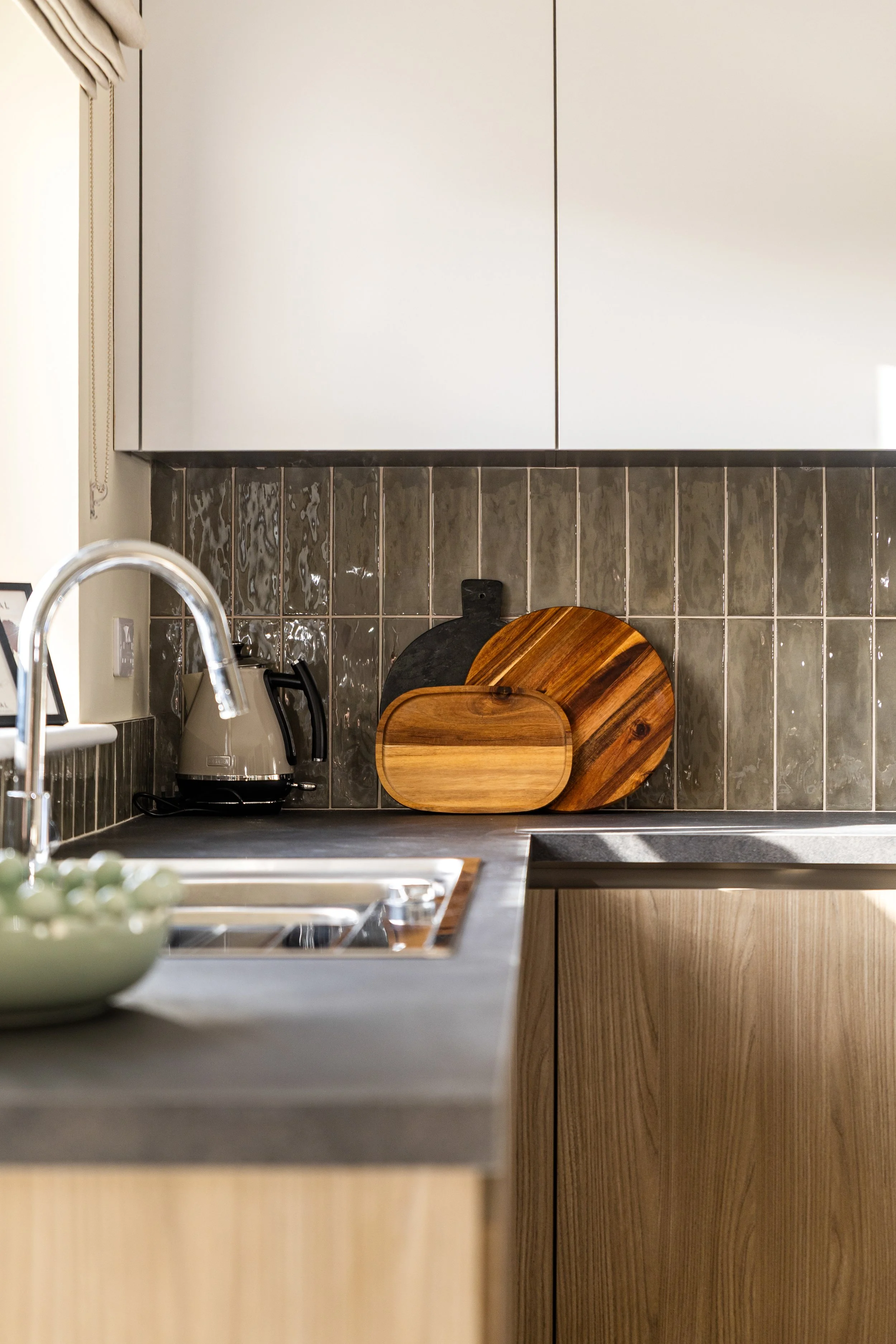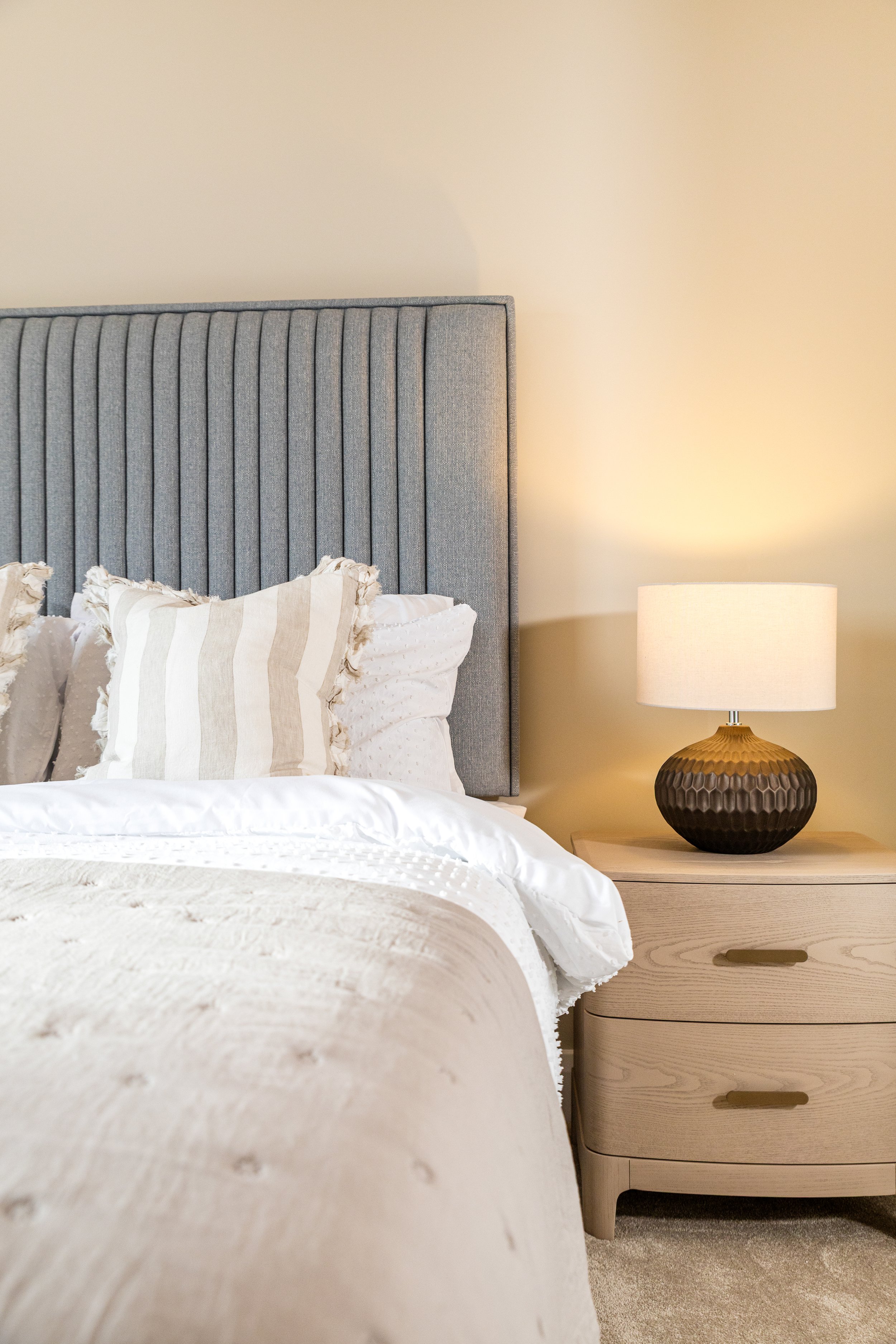 Inspired by the serenity of the surrounding woodlands we designed this showhouse with nature in mind. A calm autumnal palette was inspired by he changing colours of the seasons, complimented with natural textures such as woodgrains and stone.